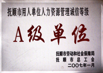 撫順市用人單位人力資源管理誠(chéng)信等級(jí)A汲單位